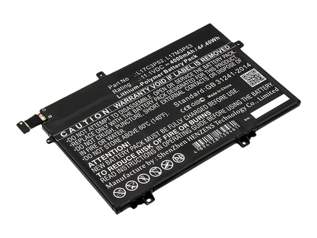 Lithium Ion - 6 cellules - 4000 mAh - 45 Wh - noir - pour Lenovo ThinkPad L14 Gen 1 20U1, 20U2, 20U5, 20U6; L14 Gen 2 20X1, 20X2, 20X5, 20X6; L15 Gen 1 20U3, 20U4, 20U7, 20U8; L15 Gen 2 20X3, 20X4, 20X7, 20X8; L480 20LS, 20LT; L490 20Q5, 20Q6; L580 20LW, 20LX; L590 20Q7, 20Q8