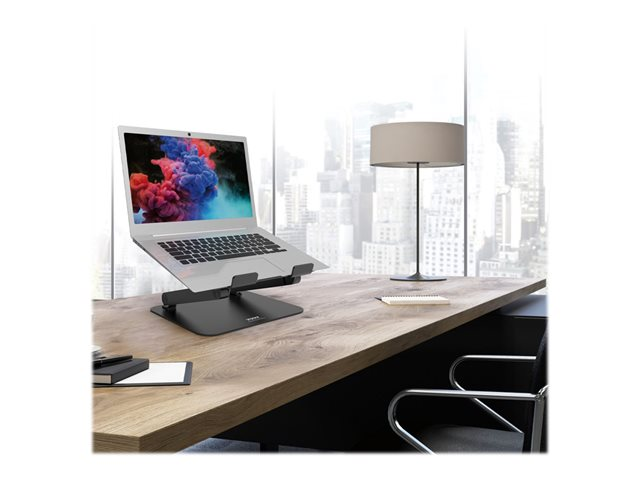 Le support réglable pour ordinateur portable PORT Connect est compatible avec les ordinateurs portables de 10" à 15,6" et la plupart des tablettes. Son design ergonomique avec une hauteur et un angle entièrement ajustables combiné à sa position surélevée permet d'améliorer le confort de l'utilisateur et de libérer de l'espace sur le bureau. Ce support pour ordinateur portable a été étudié pour maximiser les performances des appareils en permettant une dissipation de la chaleur lors d'une utilisation prolongée grâce à son corps en aluminium entièrement ouvert. Une sécurité optimale de l'appareil est également assurée grâce à ses crochets de sécurité et ses patins antidérapants.