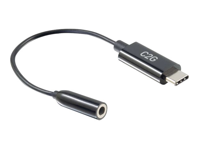 Description du produit C2G USB C to 3.5mm Audio Adapter - USB C to AUX Cable - USB C to Headphone Jack - USB-C vers adaptateur de prise casque Câble USB-C vers adaptateur de prise casque Connecteur 24 pin USB-C - mâle Connecteur (deuxième extrémité) Mini-phone stereo 3.5 mm - femelle -