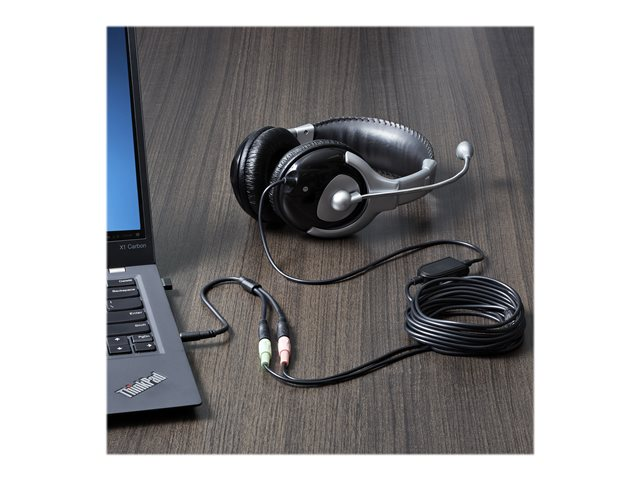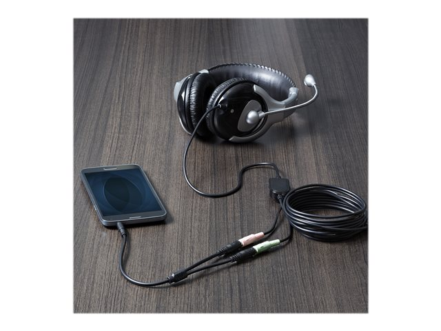 Répartiteur de casque micro - mini jack 4 pôles mâle pour jack mini femelle - 20 cm - noir - pour P/N: DK30A2DH, DK30CHDDPPD, DK30CHDPPDUE, MST30C2HDPPD, USB3SMDOCK4K, USB3VDOCKD