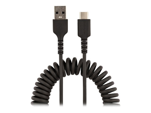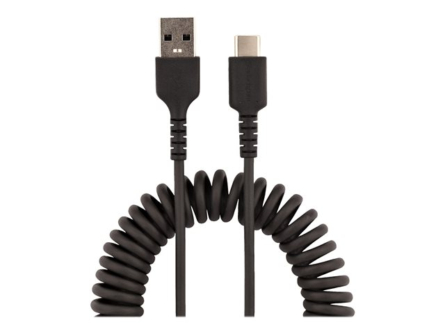 Cordon USB USB-C Enroulé à Usage Intensif - Câble USB-A vers USB-C en Fibre Aramide Robuste - Chargeur USB-C M/M - Adaptateur TB3 Noir (R2ACC-1M-USB-CABLE) - Câble USB - USB (M) pour 24 pin USB-C (M) - USB 2.0 - 3 A - 1 m - bobiné - noir