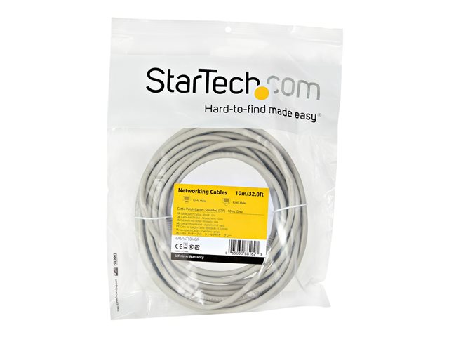 Category 6A - 26AWG (6ASPAT10MGR) - Cordon de raccordement - RJ-45 (M) pour RJ-45 (M) - 10 m - STP - CAT 6a - moulé, sans crochet - gris