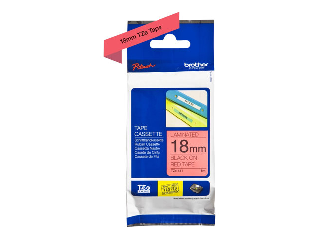 Noir sur rouge - rouleau (1,8 cm x 8 m) 1 cassette(s) ruban laminé - pour Brother PT-D600; P-Touch PT-1880, D450, D800, E550, E800, P900, P950; P-Touch EDGE PT-P750