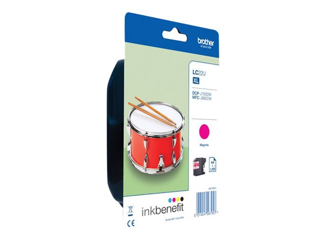 Description du produit Brother LC22UM - XL - magenta - original - cartouche d'encre Type de Produit Cartouche d'encre Technologie d'impression Jet d'encre Couleur d'impression Magenta Rendement de la cartouche XL Rendement Jusqu'à 1200 pages ISO/IEC 24711 Compatible avec Brother DCP-J785DW, DCP-J785DWXL, MFC-J985DW; INKvestment Work Smart MFC-J985DW, MFC-J985DW XL -