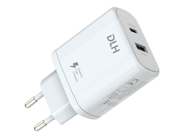 Description du produit DLH adaptateur secteur - USB, 24 pin USB-C - 32 Watt Type de Produit Adaptateur secteur Dimensions (LxPxH) 9 cm x 5.1 cm x 2.8 cm Poids 69 g Couleur Blanc Type de prise Total 2: USB, 24 pin USB-C Tension requise CA 100-240 V (50/60 Hz) Tension fournie 5 / 9 / 12 V Courant électrique max. 3 A Technologie de charge rapide Power Delivery Alimentation fournie 32 Watt Détails du dispositif d'alimentation - USB-C à 24 broches - 12 V - 20 W - 1.67 A