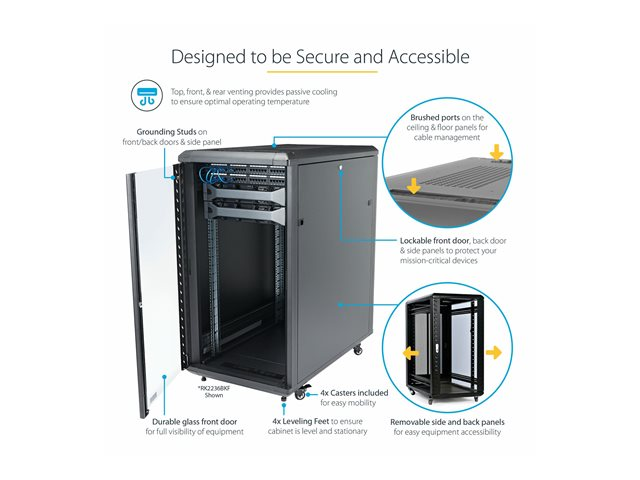 StarTech.com 18U 19" Server Rack Cabinet, 4 Post Adjustable Depth (6-32")Locking Knock Down Network/Computer Equipment Enclosure, Mobile with Glass Door & Casters, HP ProLiant ThinkServer