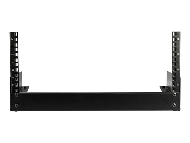 Ce rack de bureau à cadre ouvert fournit 4U d'espace de stockage et vous permet de monter de petits équipements audio/vidéo et informatiques.