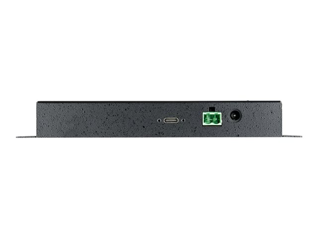 Ce hub USB est doté d''un boîtier métallique robuste avec des oreilles de montage intégrées qui vous permettent de le monter sur n''importe quel mur ou surface. Le hub est doté d''une protection contre les décharges électrostatiques dans l''air (15 kV) et de contact (8 kV), avec protection contre les surtensions de 350 W. Chaque port du hub est doté d''un verrou à vis, évitant ainsi toute déconnexion accidentelle des câbles, et un câble hôte USB-C [[SDLENTITREF[amp]]] USB-A de 1 m doté d''une vis de verrouillage est inclus.